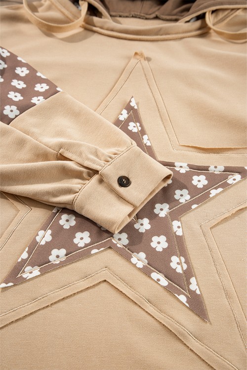 Apricot Floral Patchwork Star Pattern Drawstring Hoodie