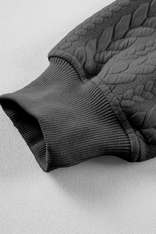 Gray Cable Textured Baggy Solid Hoodie