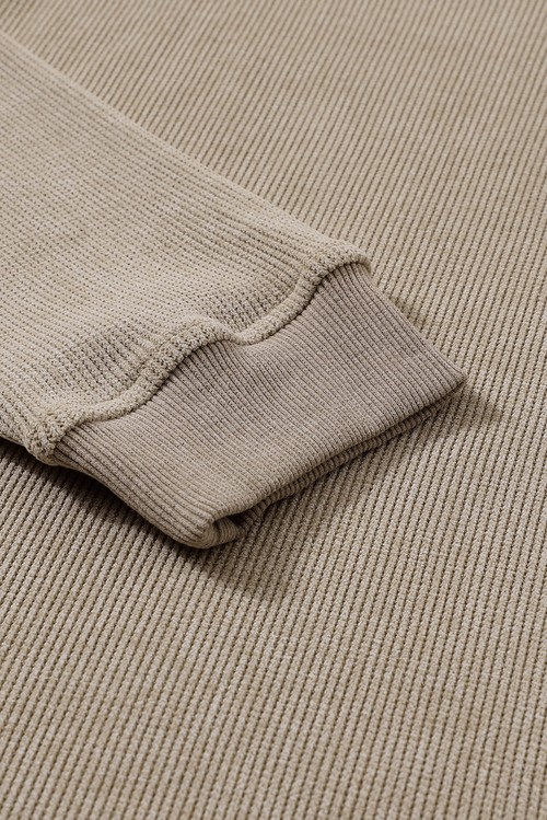 Khaki Solid Ribbed Knit Round Neck Pullover Sweatshirt